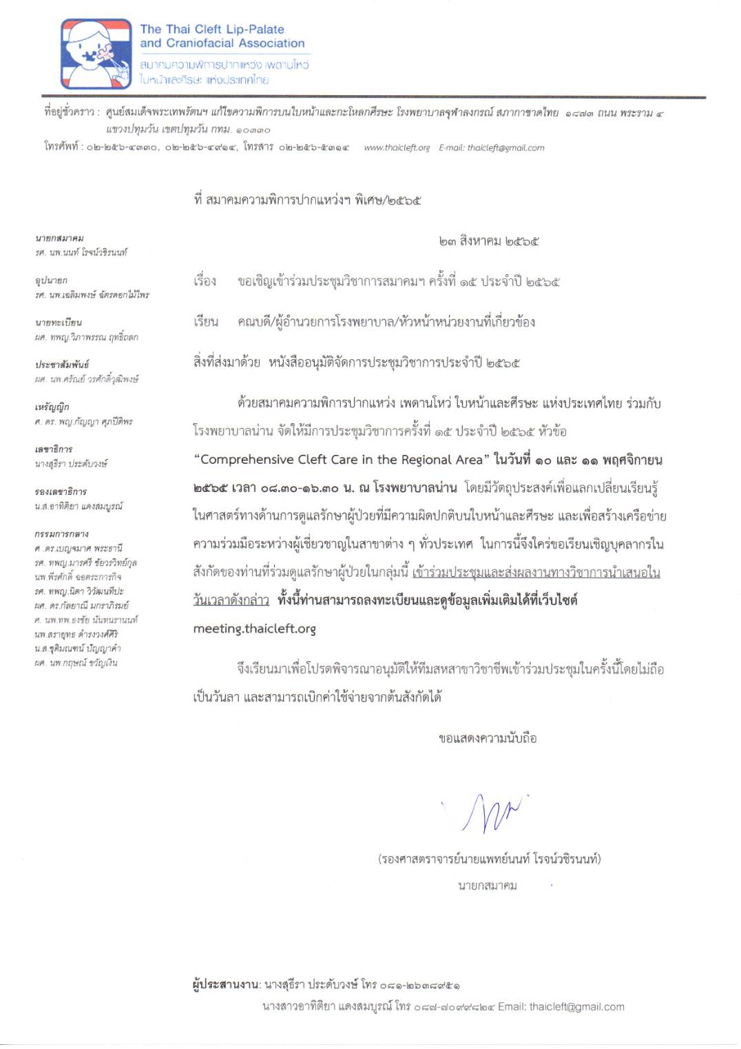 หนังสือเชิญเข้าร่วมประชุมวิชาการสมาคมฯ ครั้งที่ 15 ประจำปี 2565
